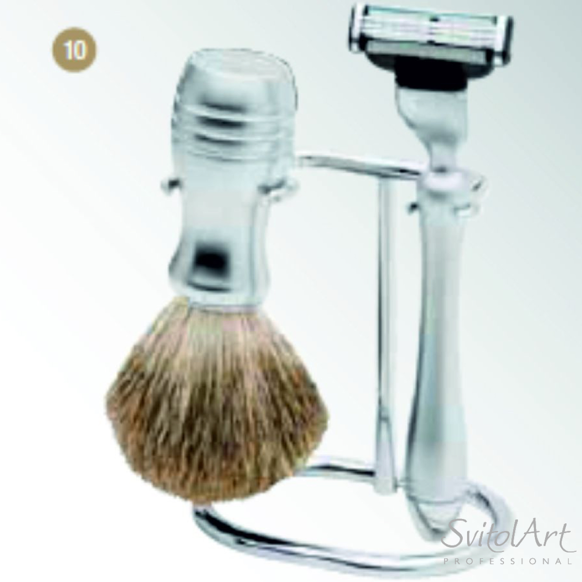 Бритвенный набор состоит из бритвенного станка системы Mach 3 и подставки для бритвы и помазка. Все инструменты выполнены из качественного черного материала, вследствие этого инструменты практически долго сохраняются в хорошем состоянии. Подставка изготовлена из нержавеющей стали и покрыта хромом. Замок крепления лезвий Mach 3 является ОРИГИНАЛЬНЫМ, производства GILLETTE и имеет номер серии, нанесенный на внутреннюю часть замка. Отличный подарок для мужчин, ценящих качество и красоту!