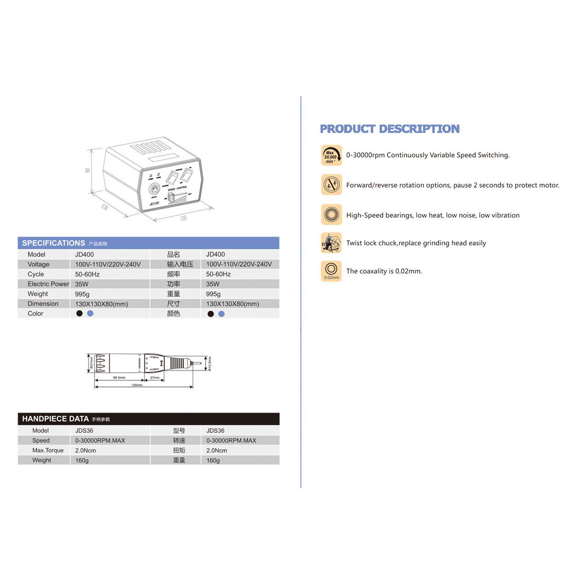 Click to enlarge ФРЕЗЕР JD 400 35W 30000 об/мин