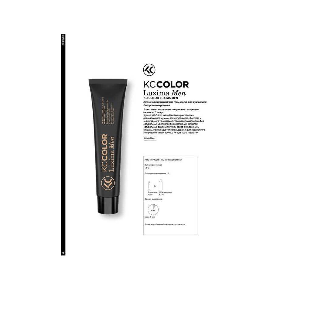 Краска KC Color Luxima Men усиливает и делает глубже натуральный цвет волос без осветления, оставляя натуральные различия в тонах волос с сохранением глубины.